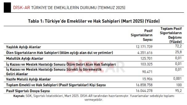 Mart 2025 itibarıyla toplam emekli sayısının 16.858.758 dir.
