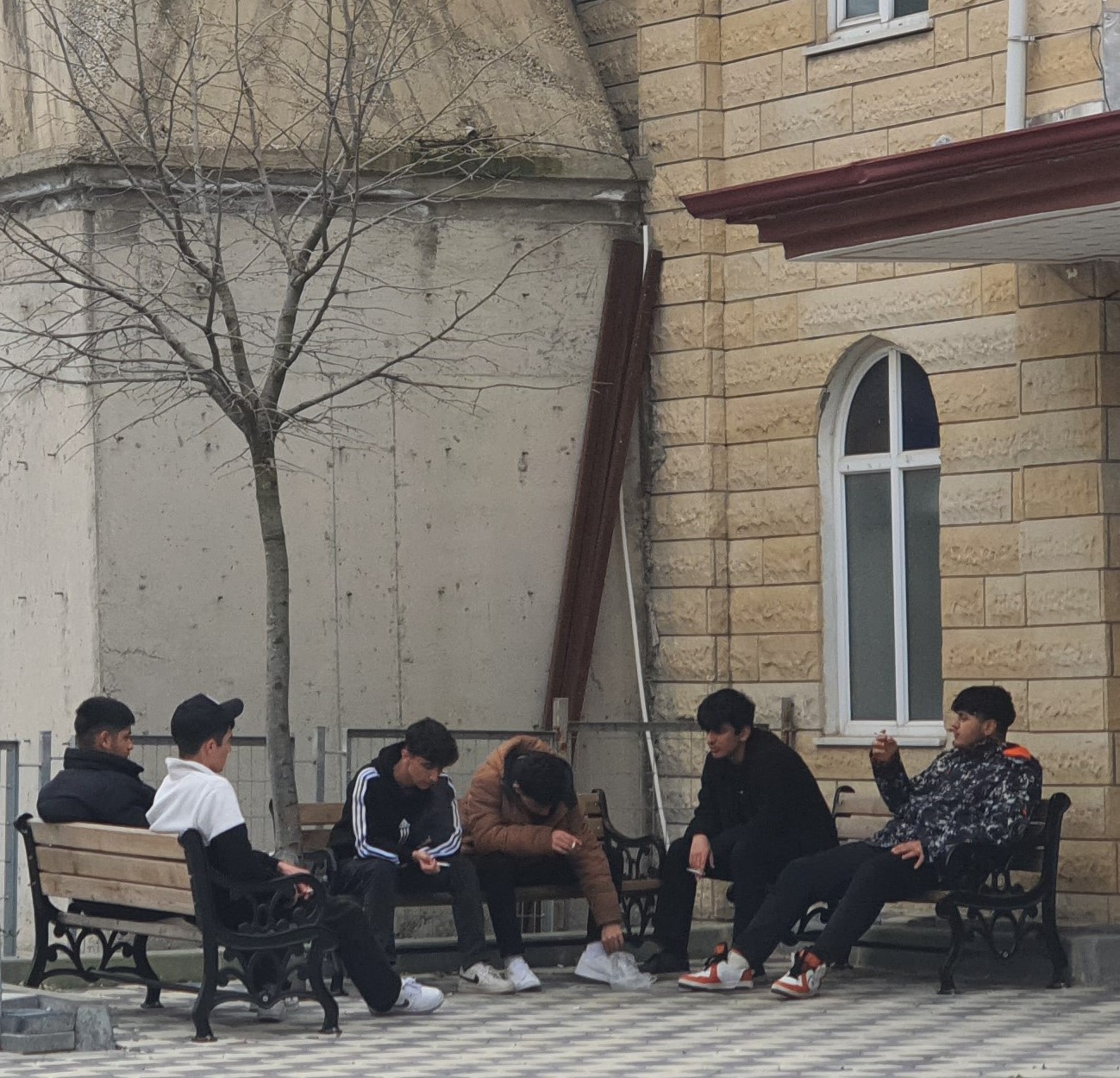 BİR KISIM ÖĞRENCİ CAMİ AVLUSUNDA BİRLİKTE SİGARA İÇİYORLAR